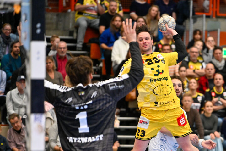 Die Eagles kamen gut ins Spiel. Nach dem vierten Treffer von Mike Schulz zum 7:5 gingen die Gäste aufgrund von Fehlwürfen und einem zu langsamen Rückzug der HSG mit einem 5:0-Lauf in Führung und bauten diese auf vier Treffer aus. Doch die Eagles schockte das nicht und kamen durch den Treffer von Christopher Klasmann, der am Sonntag Geburtstag (35) hatte, bis zur Pause auf 15:16 heran. Daran hatte auch Torwart Finn einen großen Anteil, der bis dahin in der Statistik acht Paraden für sich verbuchte.