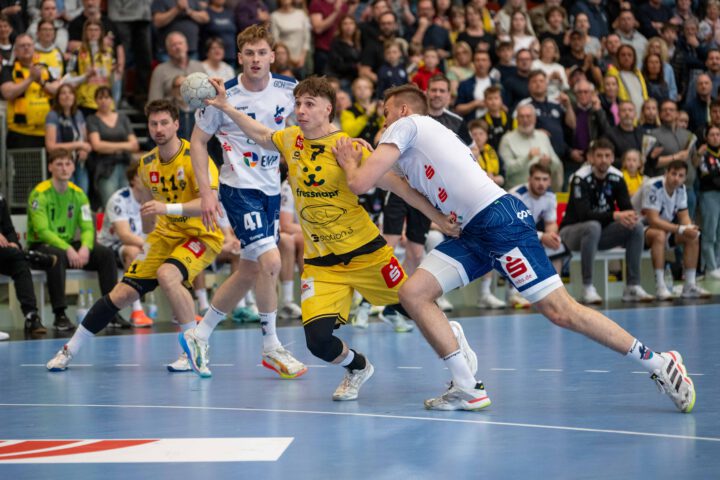 Ein freundliches Wiedersehen gab es zudem zwischen Potsdams Tim Hildenbrand, der eine Saison für die HSG spielte, und Marvin Kix von den Eagles, der noch im Februar das Trikot der Gäste getragen hatte.