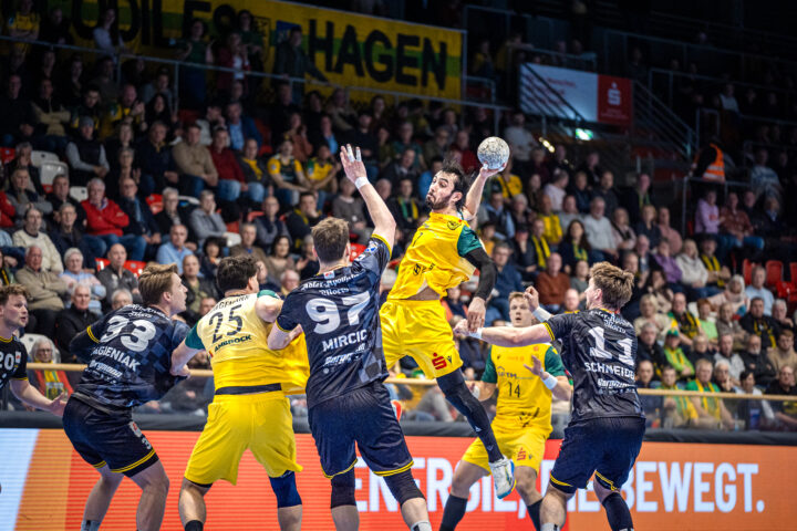 Nach dem Anwurf zur zweiten Halbzeit legten die Hagener den Grundstein für ihren Sieg. Dank weiterer Paraden von Dennis Wipf sowie mehrerer Fehlwürfe der Eagles – darunter auch ein Siebenmeter – zogen die Gastgeber auf sechs Tore davon.